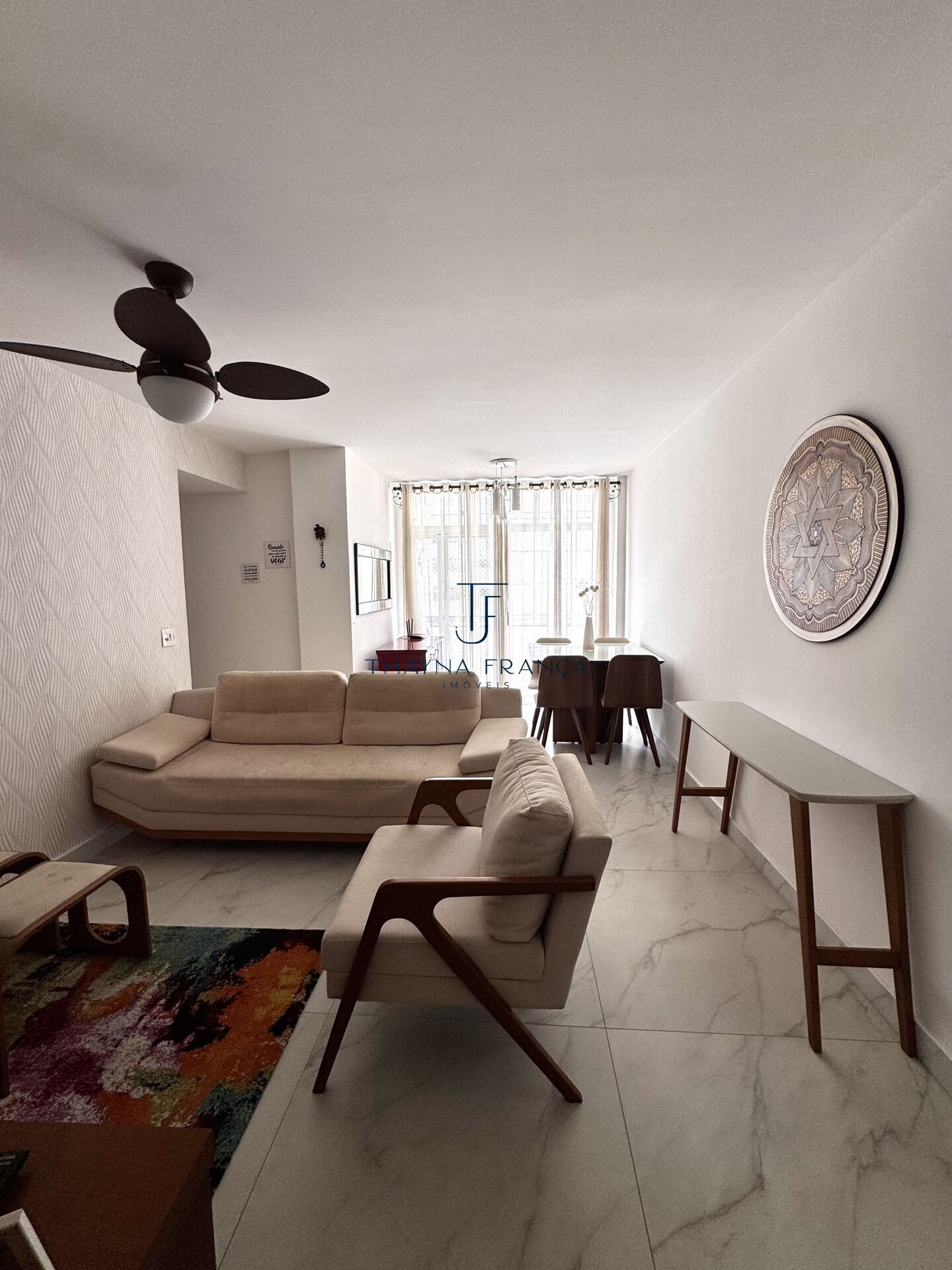 - Sala ampla com varanda integrada e cortina de vidro