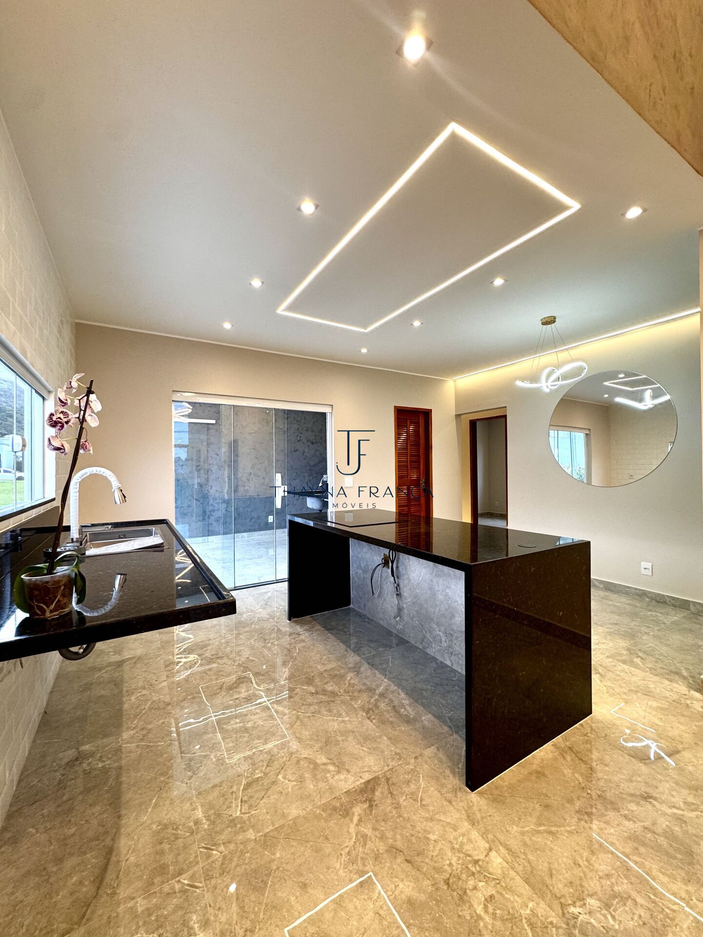 • Cozinha com ilha e cooktop de indução, moderna e funcional