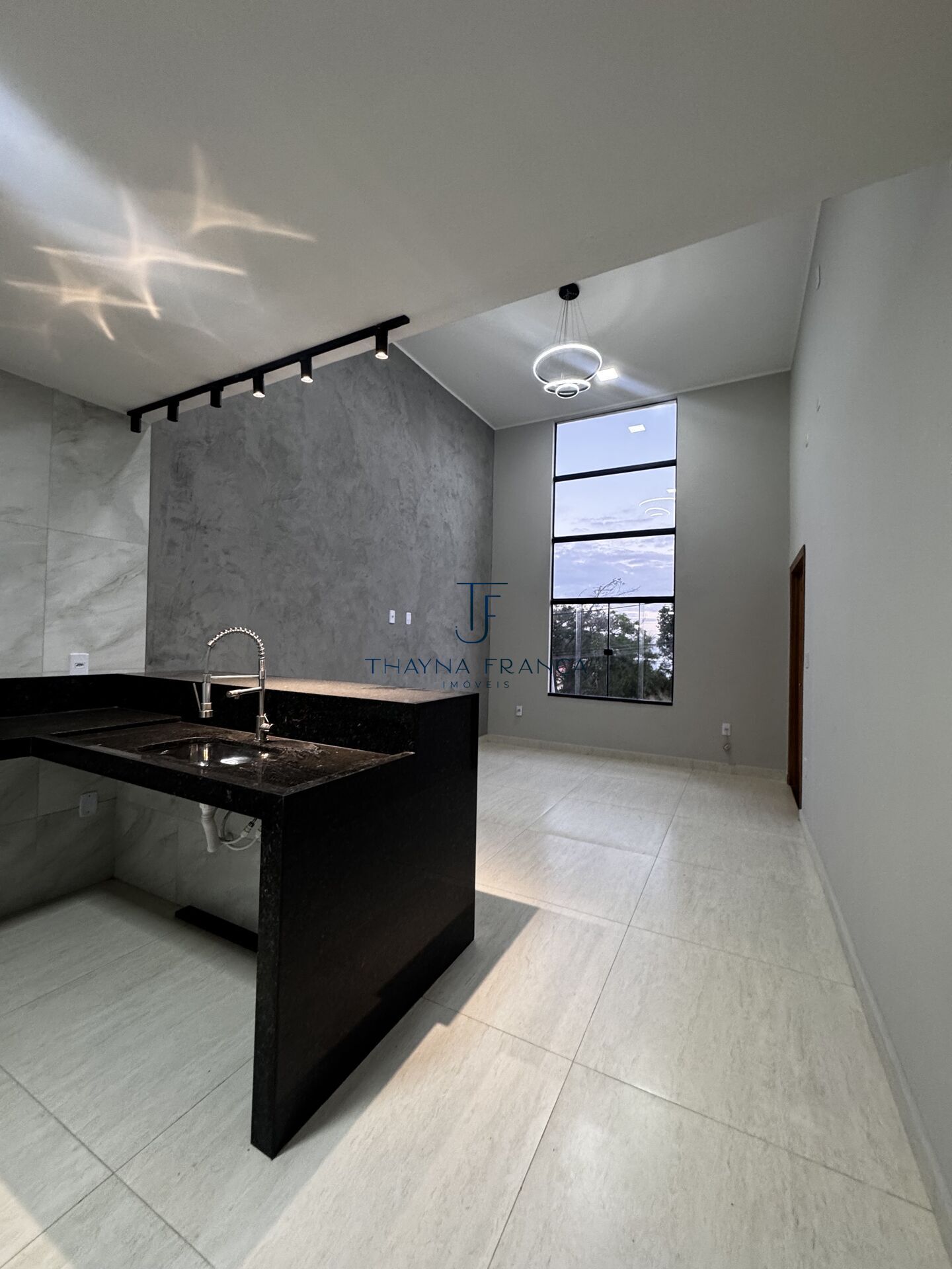 • Sala ampla com pé direito alto + rebaixamento em gesso
