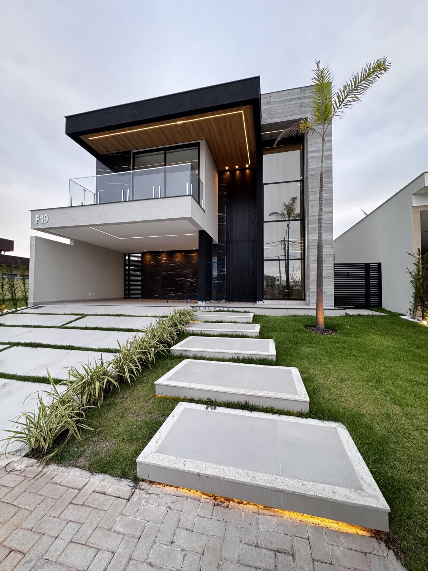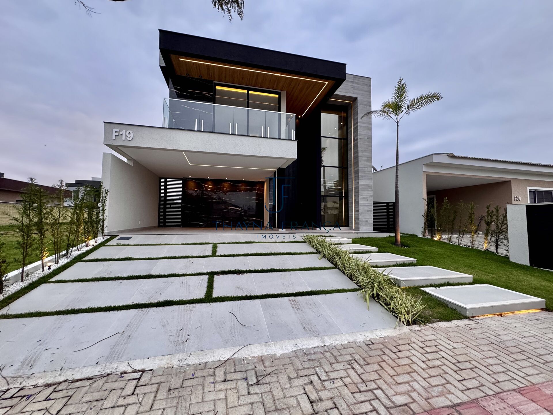 ✅ Fachada imponente com revestimento cimentício, paisagismo e projeto luminotécnico que valoriza a arquitetura.