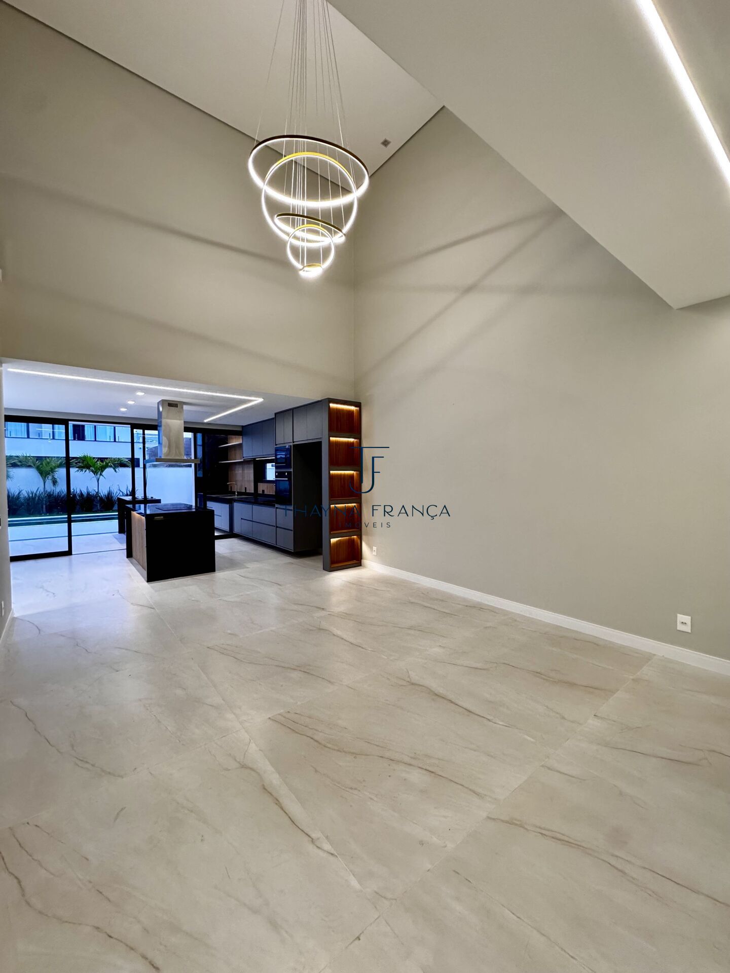 ✅ Amplo living com pé-direito duplo, iluminação embutida e integração total com a cozinha gourmet e a área externa.
